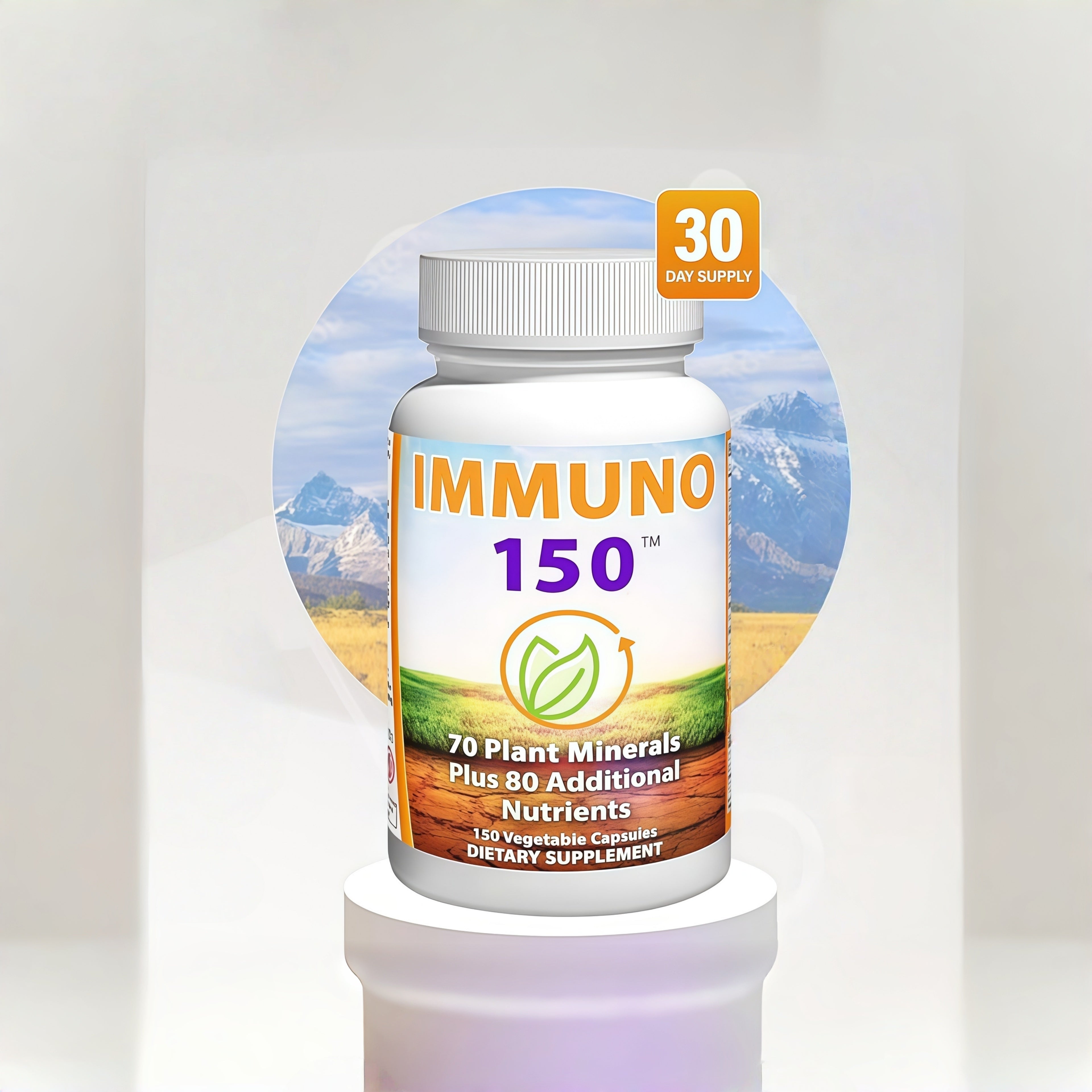 Immuno150 is a complete multi formulated with 70 organic colloidal plant minerals and over 80 essential nutrients, including vitamins, antioxidants, herbs, and amino acids. This unique blend is designed to strengthen the immune system, increase energy, and support overall vitality. Certified Kosher, OMRI listed, USDA approved, and produced in an FDA-certified facility, Immuno150 delivers safe, high-quality nutrition. Backed by DSHEA standards, it helps fill nutrient gaps, promotes wellness, and provides lasting daily support for your body.